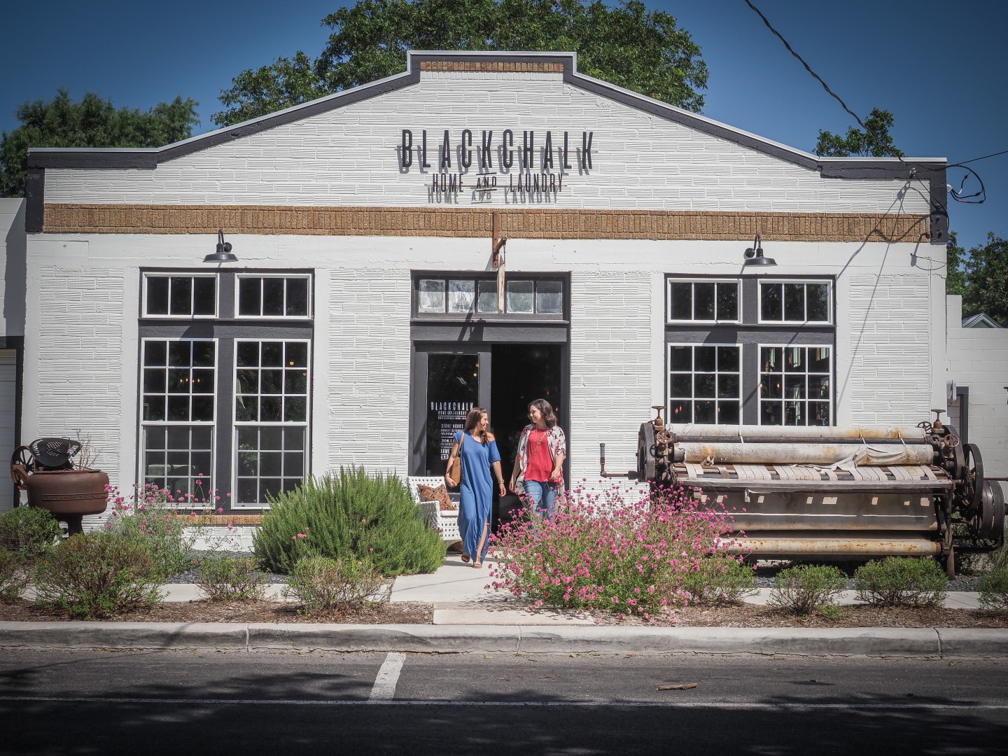 BLACKCHALK HOME + LAUNDRY es un espacio ecléctico y colorista lleno de texturas y objetos encontrados. Ofrece muebles, iluminación, accesorios, alfombras vintage y nuevas, además de joyas y regalos. El edificio en sí está cargado de historia y te transporta a una época pasada que deleita los sentidos. La especialidad de Blackchalk es ayudar a diseñar y conservar el espacio perfecto. Con más de 1.000 telas para elegir y ofreciendo tejidos de alto rendimiento para una vida familiar, la tienda ayuda a diseñar los muebles perfectos, personalizados según los gustos. Además, ¡están fabricados en EE.UU.!