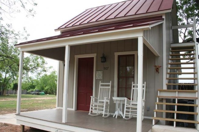 Situado a sólo dos cuadras al norte de la calle principal de esta pequeña casa maravillosa está en una calle tranquila y rodeada de otras casas encantadoras. El porche es el lugar perfecto para disfrutar de las mañanas frescas Hill Country mientras se está sentado en las mecedoras. La cama de hierro rey, televisión de pantalla plana de 42 "tiene cable estándar. La barra de café y cocina tiene un pequeño refrigerador, microondas y cafetera. El cuarto de baño incluye una gran ducha de cristal con dos cabezales de ducha en ambos lados. Un patio privado con cómodos asientos y chimenea; no se proporcionará madera.