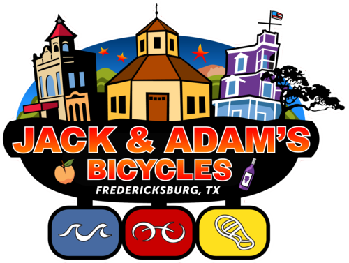 Una tienda de bicicletas de servicio completo, Jack & Adam's Bicycles llevará cuatro líneas de bicicletas diferentes, incluyendo Felt, Scott, Guru y Turner Bicycles que cubren una amplia gama de estilos - desde bicicletas de carretera hasta bicicletas para niños e incluso bicicletas eléctricas que disminuyen el estrés de las colinas difíciles para los ciclistas menos experimentados. Jack & Adam's Bicycles también tiene una gran variedad de zapatillas y ropa para correr, ropa de natación, gafas de sol y casi cualquier cosa que necesites para disfrutar de tu aventura al aire libre en Fredericksburg y el Texas Hill Country.