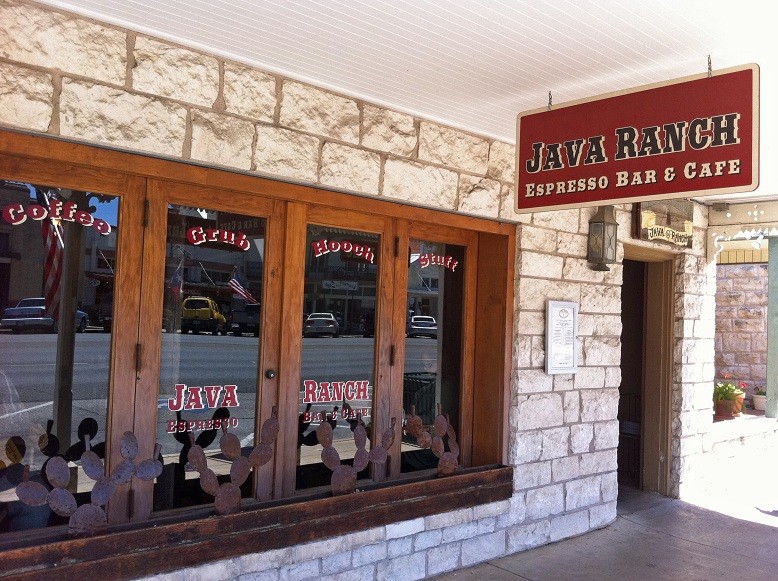 Java Ranch Espresso Bar and Cafe, sirve desayunos y almuerzos. Convenientemente situado en la histórica Main Street en el centro de Fredericksburg, Texas, sirven las mejores bebidas de café caliente o helado en cualquier lugar incluyendo lattes, capuchinos, Hill Country café tostado, Americanos, mochas y bebidas especiales. ¿Tiene hambre? Acérquese al mostrador y pruebe el amplio surtido de pasteles y tartas de la panadería, así como desayunos y almuerzos de la cocina. También ofrecen batidos, cerveza, vino, margaritas heladas, tacos de desayuno, sándwiches de charcutería, wraps de ensalada, sopas y bollería variada, como galletas, tartas, magdalenas, cruasanes y strudel. Localmente propiedad y operado "Keepin 'it Texas Cool!" Por más de 16 años y'all.