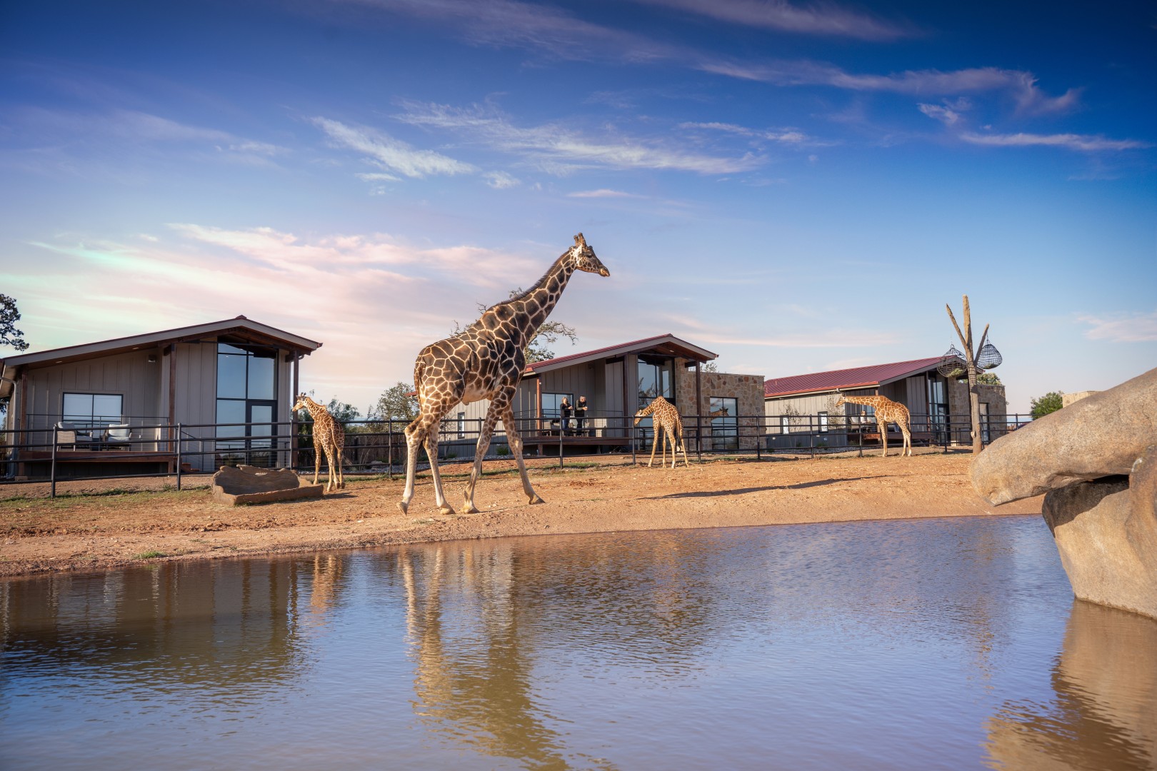 Longneck Manor es una organización sin ánimo de lucro dedicada a la conservación de la vida salvaje que ofrece encuentros diarios con animales a las 11.00 y a las 14.00 horas. Estas memorables interacciones duran aproximadamente 75 minutos y ofrecen experiencias de cerca con jirafas y rinocerontes en grupos reducidos. Los especialistas en el cuidado de animales dan de comer a las jirafas, acarician a los rinocerontes y educan al grupo sobre ambas especies. Si el tiempo lo permite, se realiza una breve visita al moderno establo. Es necesario reservar. Los huéspedes deben llegar al menos 10 minutos antes de su reserva. Longneck Manor también ofrece alojamiento de lujo en B&B. Se puede reservar la Suite de la Jirafa y otras cuatro villas. Para más información, consulte su sitio web.