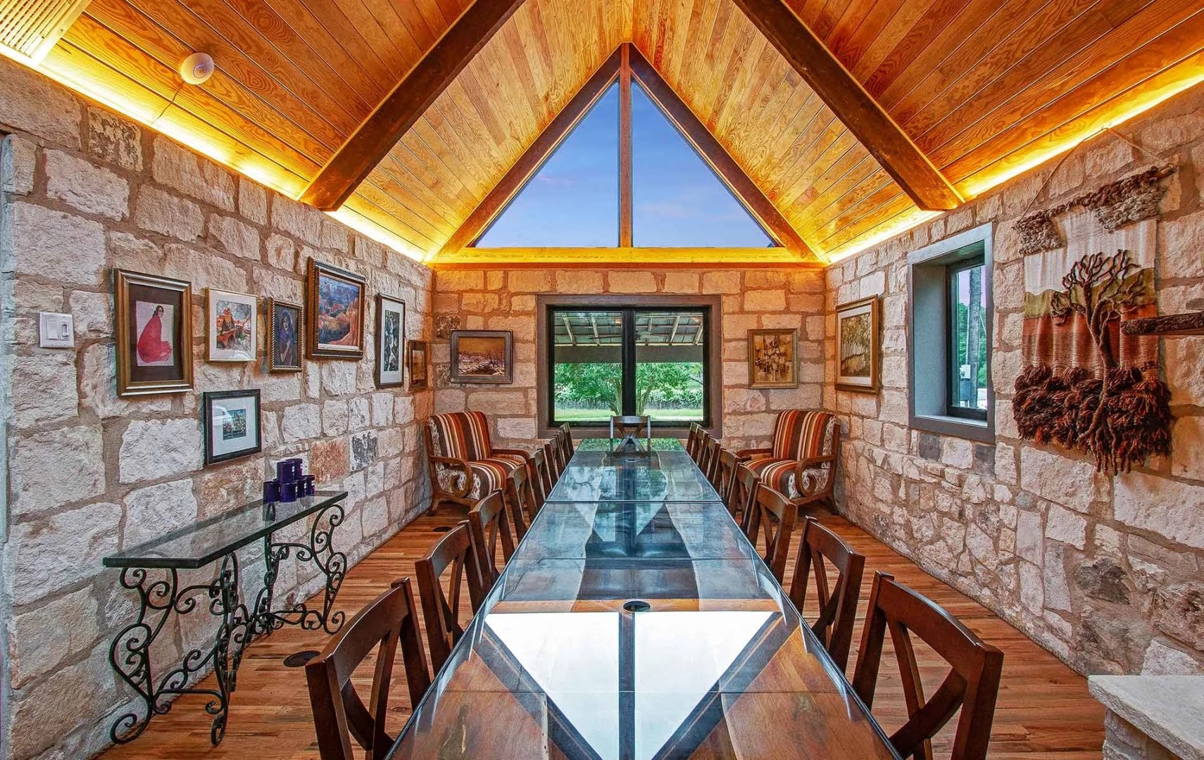 The Porch House se encuentra a seis kilómetros al este de la calle principal de Fredericksburg. Se trata de una granja de piedra de 1880 renovada con espacio para reuniones y comedores para un máximo de 16 personas alrededor de mesas hechas a medida con madera de bois d'arc rescatada de la propiedad. Espacio para recepciones, medio baño, cocina y dormitorio en suite con cama de matrimonio. Las sesiones de trabajo pueden celebrarse en el porche delantero, el porche trasero, la pérgola, la hoguera o dando un paseo por el campo de heno. Alojamiento de los asistentes en ocho suites de contenedores de transporte - Odonata Escape, cada una con cama de matrimonio, sofá-cama de dos plazas, cocina americana, cuarto de baño y mobiliario y decoración exclusivos.