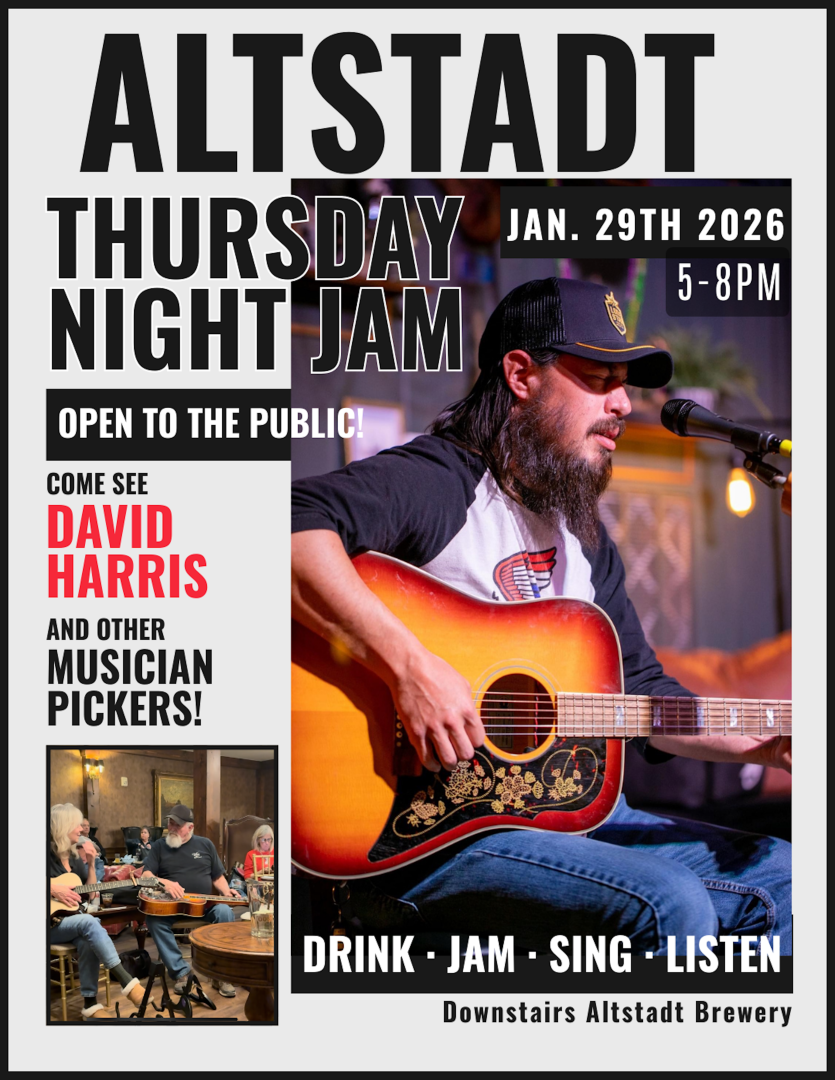 Come DRINK • JAM • SING - LISTEN with us every Thursday evening, at 5:00pm to 8:00pm, at Altstadt Brewery! Some of Texas' best local musicians of all genres can be seen and heard here. If you sing or pick, we invite you to jump in and jam. If you're just looking for the perfect place to relax and have some of America's best beer and food, Altstadt will hit the spot!