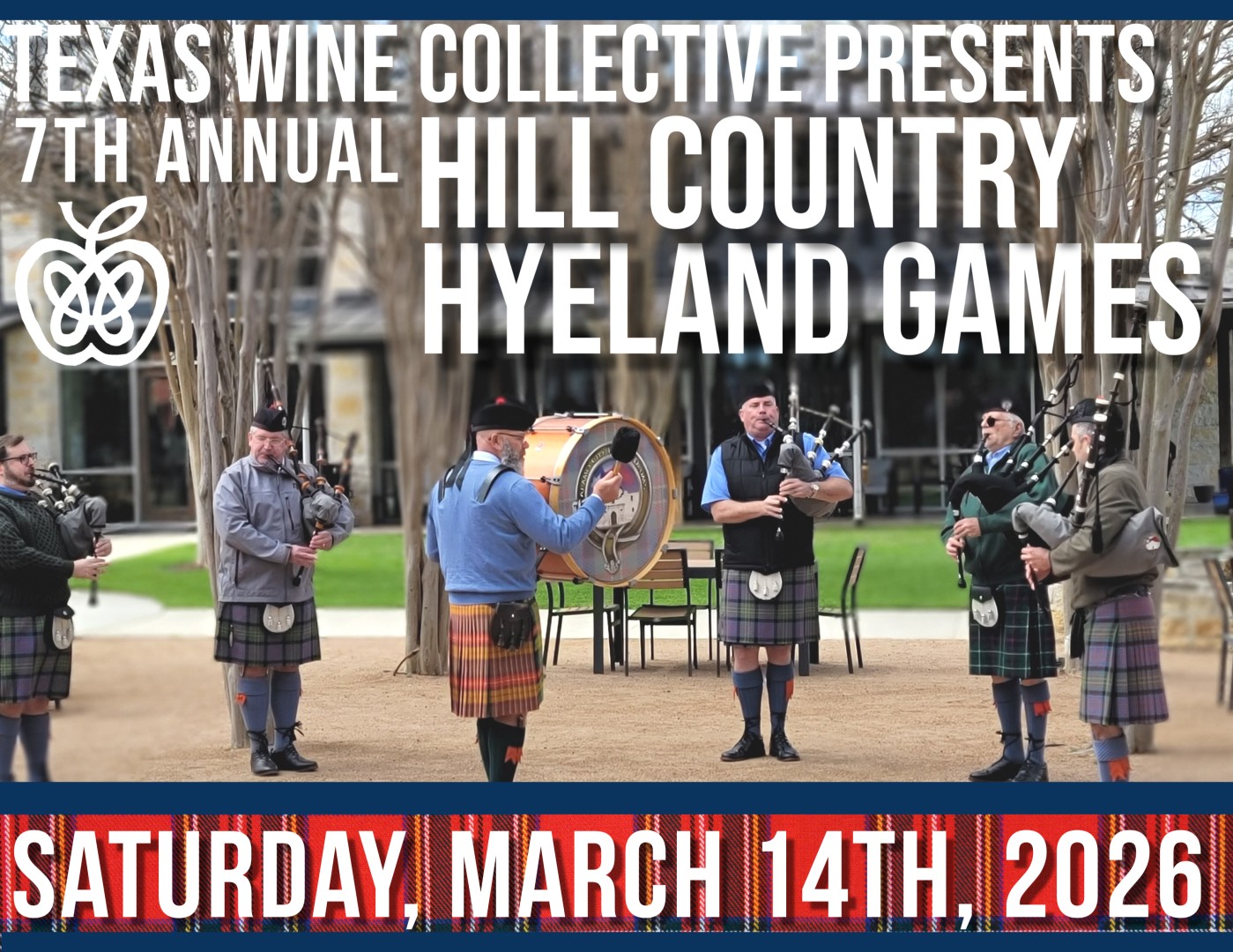 Spring brings the excitement of the Highland Games to the Hill Country! Join us on Saturday, March 14th, 2026, for Texas Wine Collective’s 7th annual Highland Games, a day filled with thrilling Scottish athletic competitions, kilts, delicious bites from the Cork & Fork food truck, captivating performances by the San Antonio Scottish Highland Dancers, the vibrant sounds of the Alamo City Pipes & Drums, and much more!