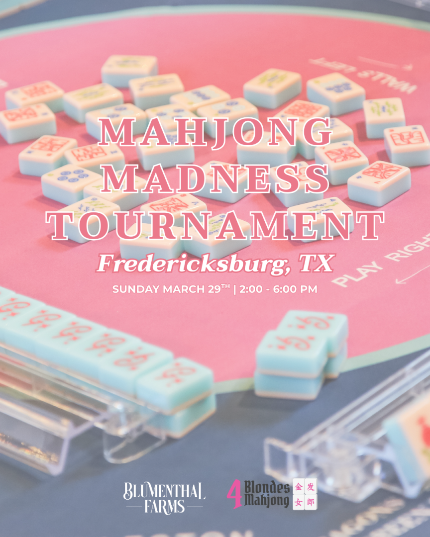 Presented in partnership with 4 Blondes Mahjong, this isn't just a game night, it's THE mahjong event of the Spring bringing together players from Fredericksburg and across the Texas Hill Country.