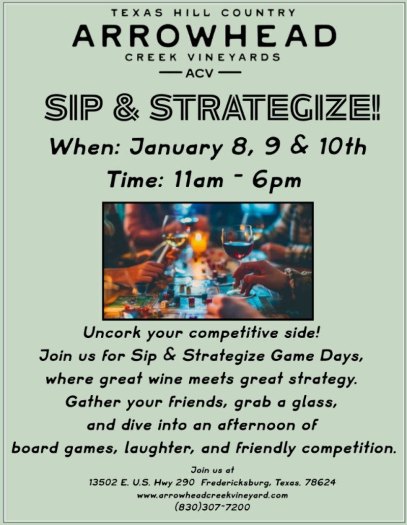 Sip & Strategize @ Viñedos Arrowhead13502 E. U.S. Highway 290