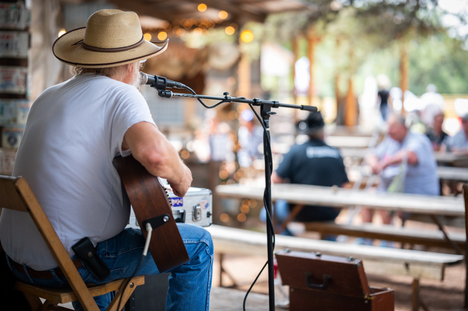 Canciones y cuentos en el escenario del Biergarten412 Luckenbach Town Loop