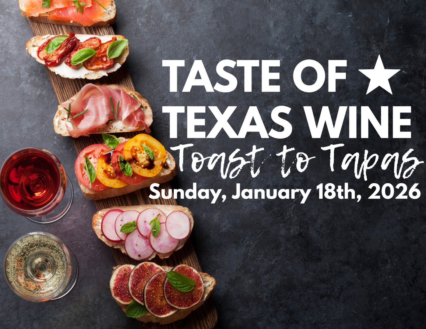 ¡Acompáñenos en un sabroso Brindis por las Tapas y el Vino de Texas! Bebe, pica y aprende mientras te llevamos en un delicioso recorrido por los vinos de Texas, cada uno perfectamente emparejado con sabrosas tapas elaboradas por el chef. Texas Wine Collective maridará seis de nuestros vinos con una variedad de tapas que destacan los ingredientes y sabores locales. Hablaremos sobre los perfiles de sabor, consejos de maridaje y datos divertidos sobre el vino mientras degustas el menú, por lo que es perfecto para los amantes del vino, los gastrónomos y cualquiera que busque pasar un buen rato.