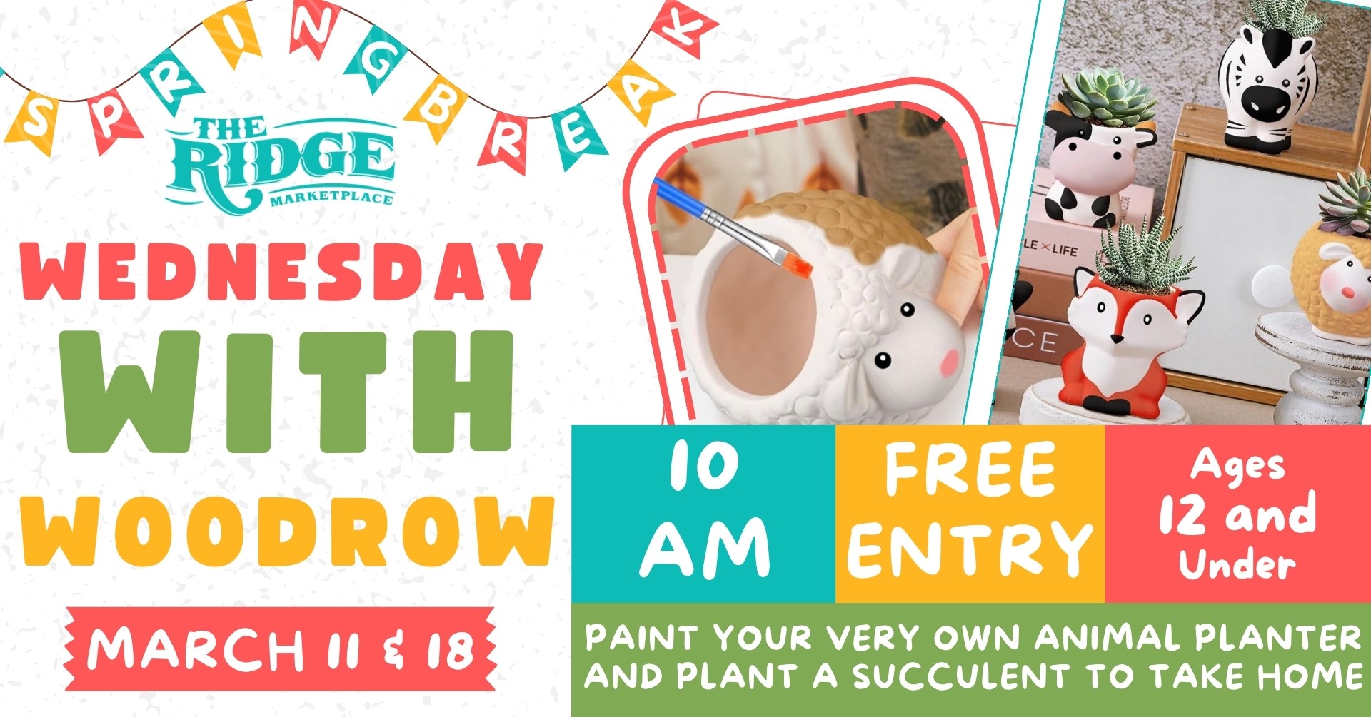 This hands-on kids event is perfect for ages 12 and under. Children will get to paint their very own animal planter and plant a succulent to take home. It’s creative, interactive, and a great way to spend a Spring Break morning.